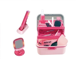 Trasformate la cameretta in un piccolo salone di parrucchiere. Questo set giocoso include una piastra per capelli rosa per bambini con pratico supporto e un solido specchio da tavolo con lucine che creano l’atmosfera di un salone professionale. Tutti gli accessori sono realizzati in plastica leggera e adattati alle mani dei bambini.