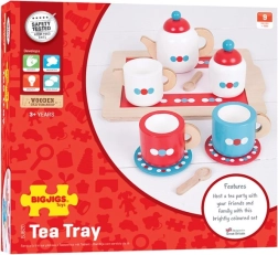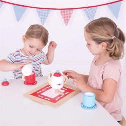 Tutto ciò di cui i bambini hanno bisogno per fare gli onori di casa: teiera, tazze con piattini, zuccheriera, lattiera, cucchiaini e vassoio stabile per servire con facilità.