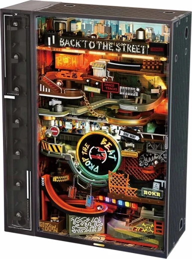 Un panorama in miniatura di una strada hip‑hop pulsante porta il movimento fluido delle biglie su una pista lunga 233 cm, esaltato da una dinamica illuminazione LED al neon. Grazie al motore efficiente ad alto torque, le biglie tornano in modo affidabile tramite l’ascensore automatico, per uno spettacolo continuo.