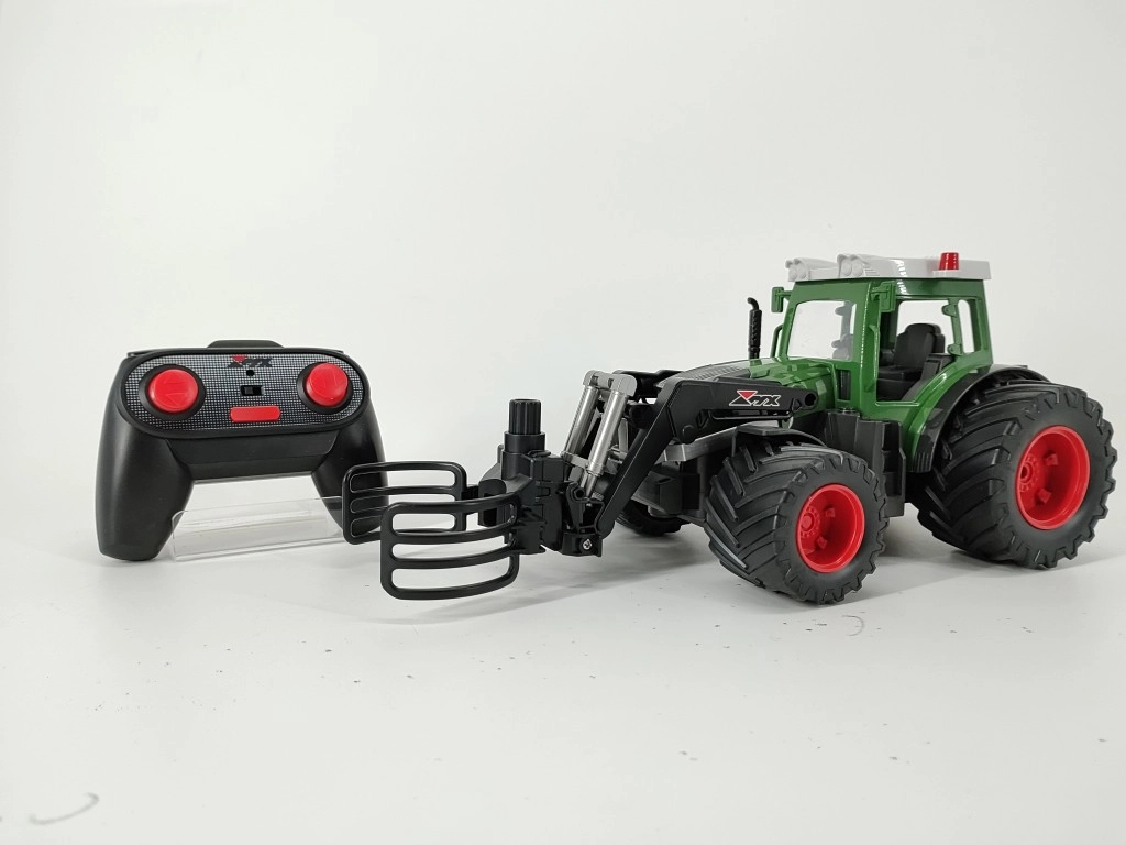 Realistico trattore RC con pinza per balle in scala 1:24, dotato di controllo stabile a 2,4 GHz, braccio frontale funzionante con pinza e ruote robuste per una migliore trazione. La batteria ricaricabile garantisce più tempo di gioco e il controllo a sei canali offre manovrabilità precisa in avanti, indietro e lateralmente.
