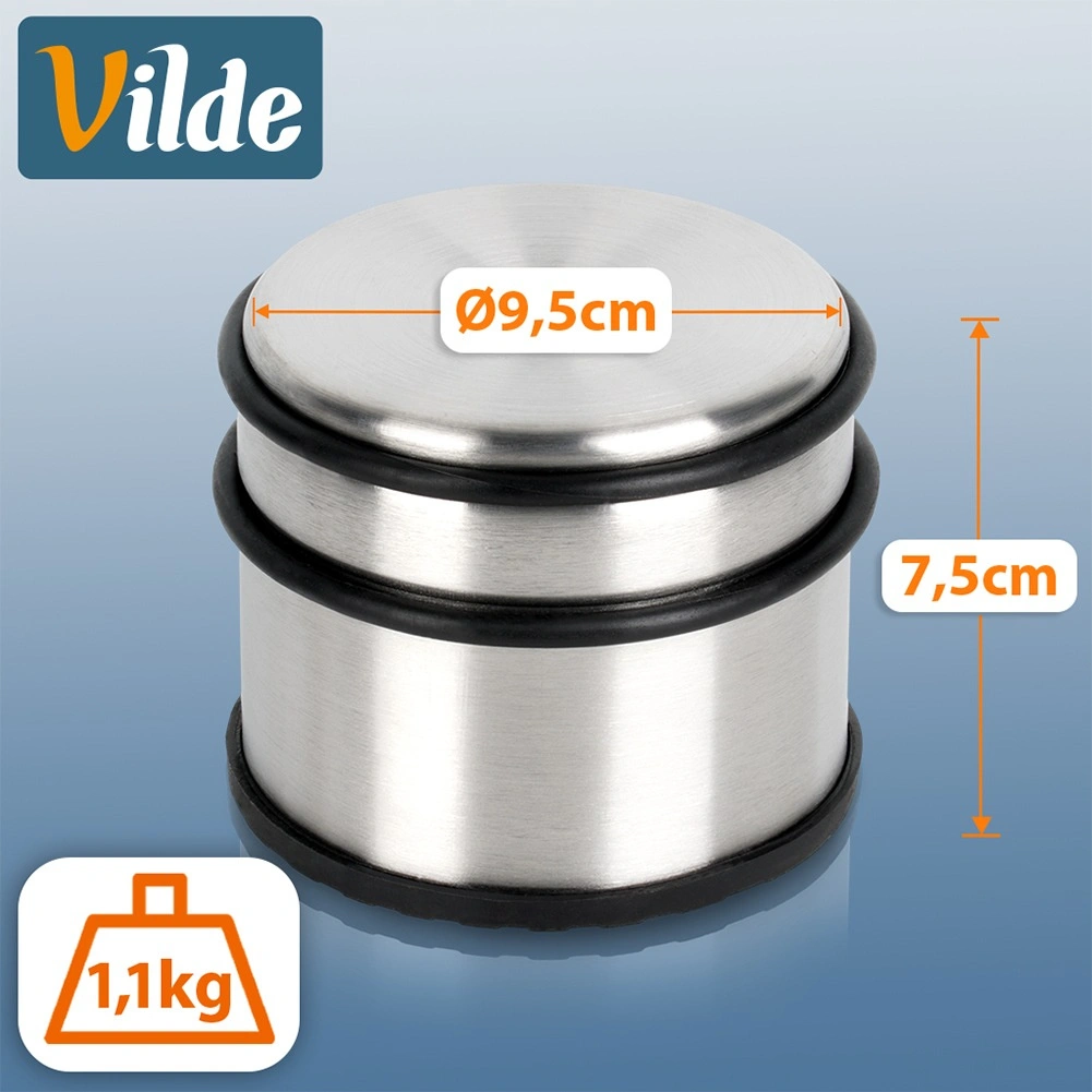 Elegante e pesante fermaporta in acciaio inox di colore argento, ideale per appartamenti, case e uffici. L’alto peso di 1,1 kg garantisce stabilità, così la porta resta esattamente dove serve. Gli anelli in gomma lungo il perimetro proteggono la porta dagli urti e la base in gomma impedisce lo scivolamento proteggendo il pavimento.