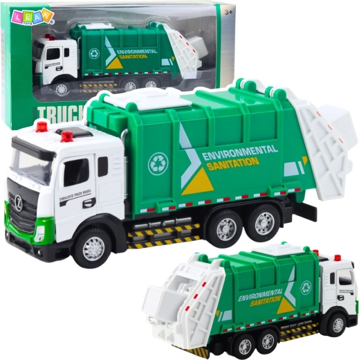 Il realistico camion dei rifiuti entusiasmerà i piccoli appassionati di tecnologia e dei servizi urbani. Dispone di una robusta cabina in metallo, porte apribili e un cestello sollevabile come nei veri mezzi della nettezza urbana. Il divertimento è assicurato da effetti luminosi e sonori, subito pronti all’uso grazie alla batteria AG13 inclusa.