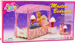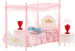 Con questo set di mobili dal design raffinato creerai per le bambole una camera da letto accogliente e lussuosa. Il protagonista è il letto con romantico baldacchino e tendaggi leggeri, che donano all’intera scena un’atmosfera fiabesca. I dettagli curati e l’armonia cromatica rosa-bianca invitano al gioco e ad allestimenti eleganti.