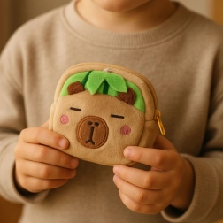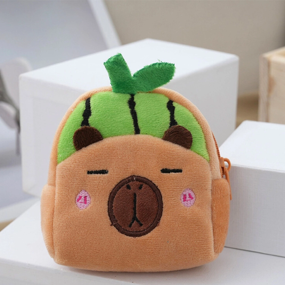 Adorabile portamonete in peluche a forma di capibara con motivo di anguria verde, ideale per bambini e per chi ama gli accessori morbidi. È leggero, piacevole al tatto e sicuro per l’uso quotidiano. Grazie alle dimensioni compatte di 9,5 × 8 cm entra facilmente in borsa, zaino o tasca. La chiusura con zip mantiene monete e piccoli oggetti al sicuro e la pratica clip in plastica permette di agganciarlo a borsa, zaino o chiavi.