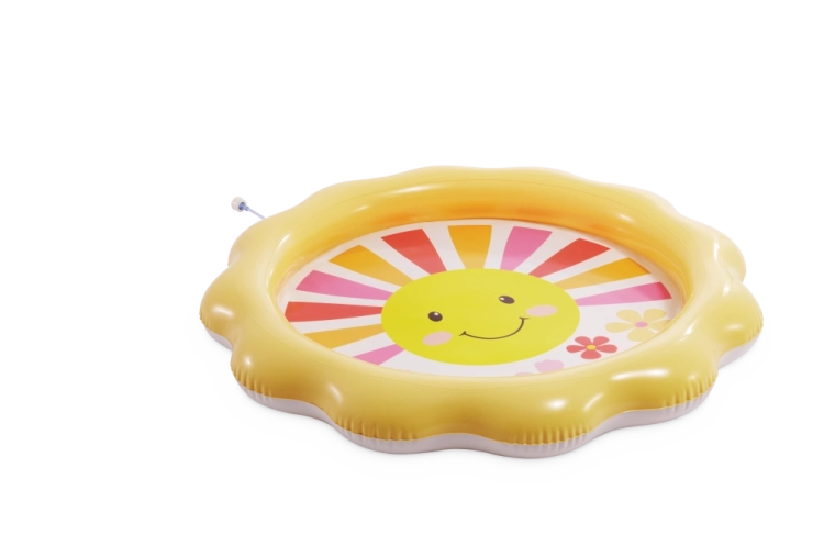La piscina gonfiabile per bambini Raggi di Sole è progettata per giochi d’acqua vivaci per bimbi a partire da circa 2 anni. Il bordo giallo ondulato che ricorda i raggi del sole e la stampa allegra con sole e fiori creano un ambiente amichevole e invitante per schizzi sicuri. La fontanella perimetrale integrata si attiva semplicemente collegando il tubo da giardino, trasformando la piscina in un rinfrescante parco giochi con doccia.