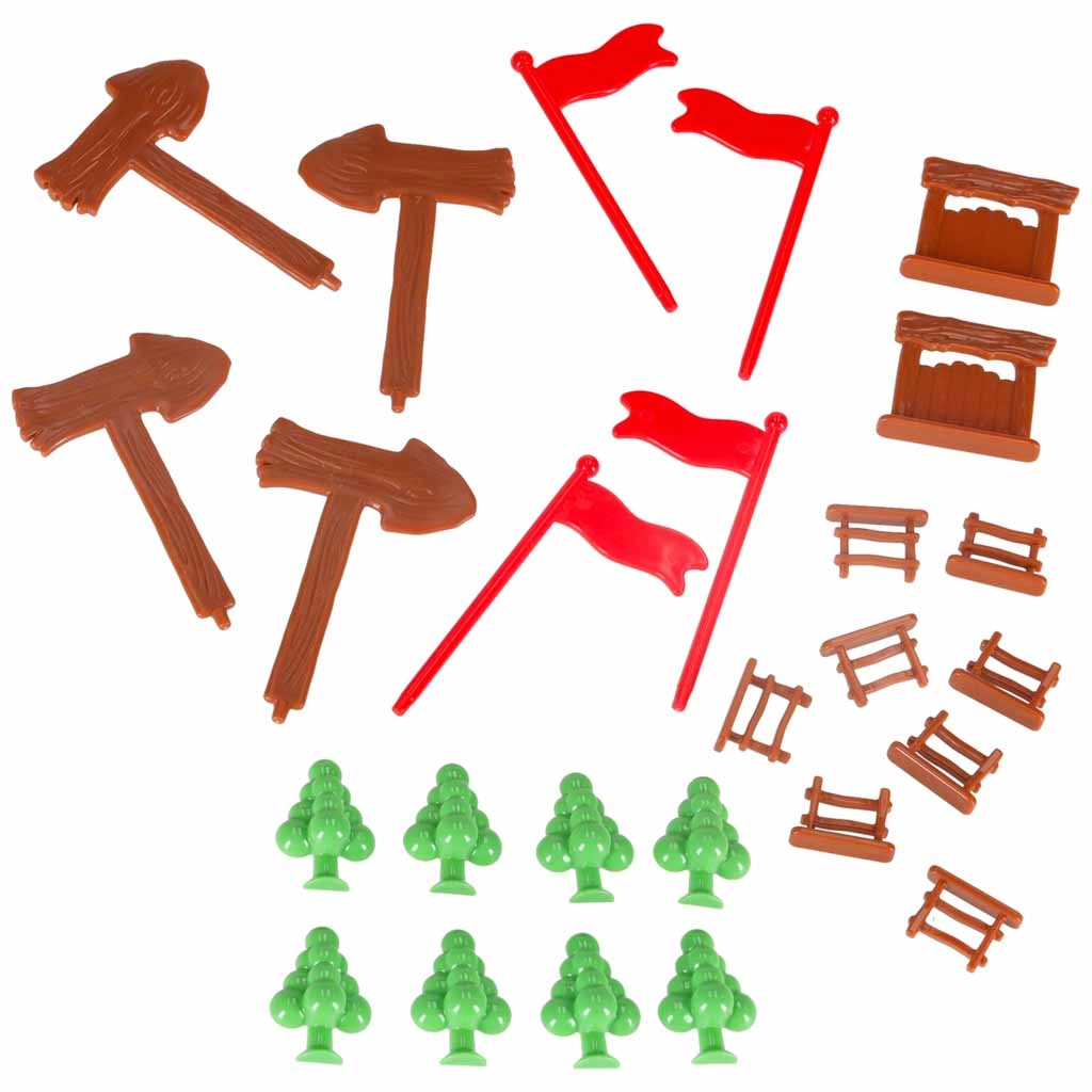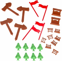 • Ricco set di accessori: ponte, rocce, staccionate, bandiere, frecce, fiori, alberi