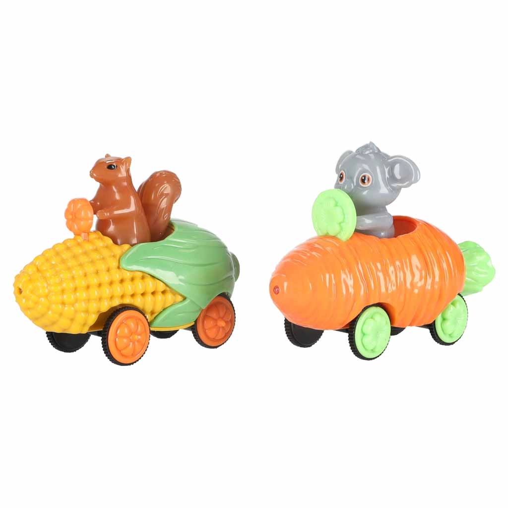 La macchinina carota e quella mais, con koala e scoiattolo, sono perfette per le mani dei bambini e rendono ogni corsa più divertente.