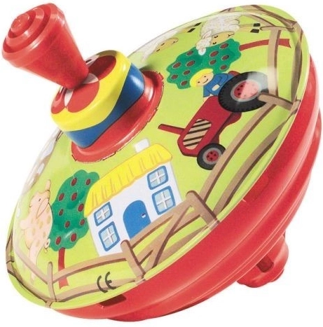 Questa tradizionale trottola musicale con motivo della corte contadina è un giocattolo ideale per i più piccoli. Il semplice meccanismo a leva avvia la rotazione della trottola, che durante il movimento produce un suono caratteristico e offre stimoli visivi.