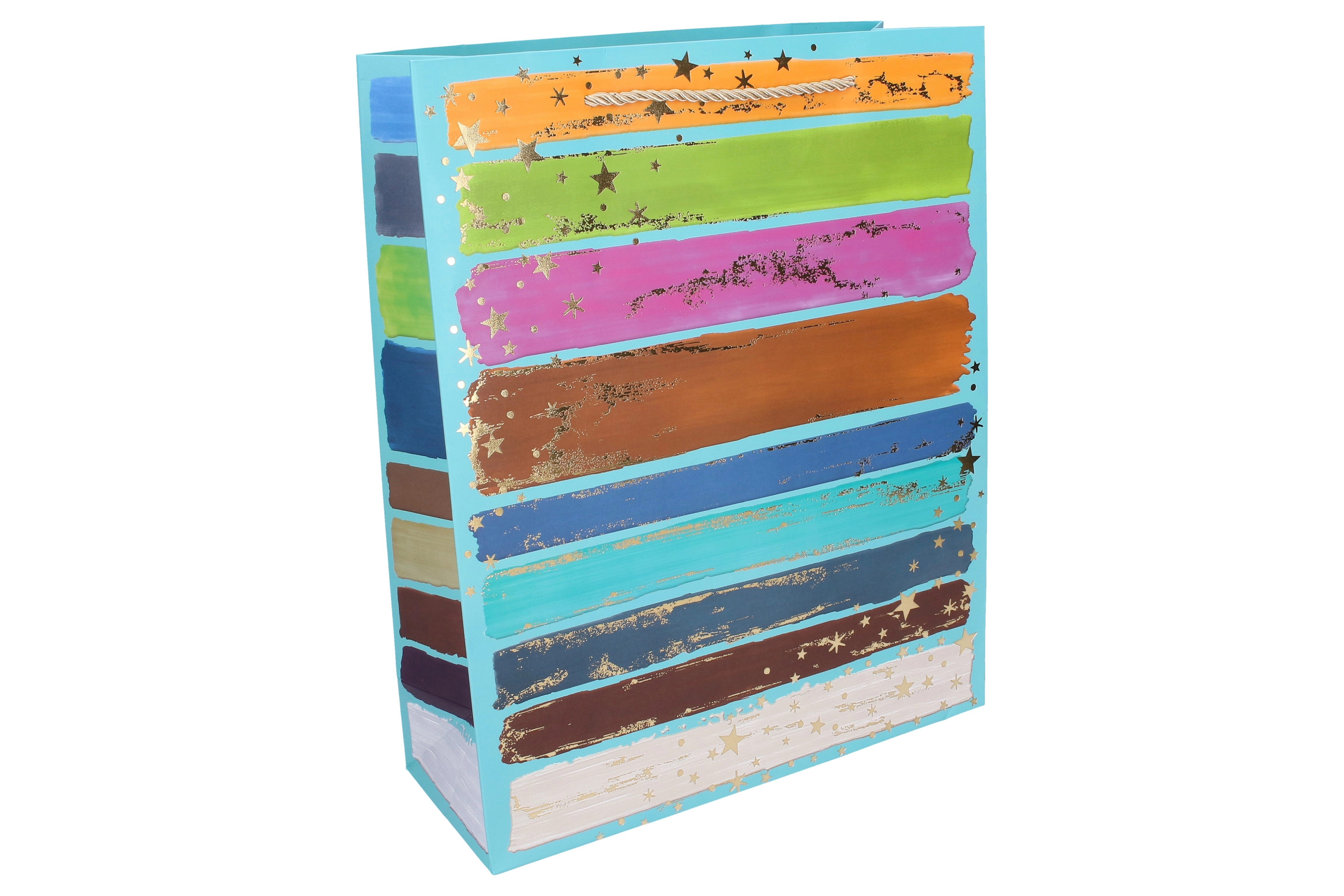 Busta regalo M 26 × 32 × 10 cm – per tutto l’anno, righe colorate e accenti dorati