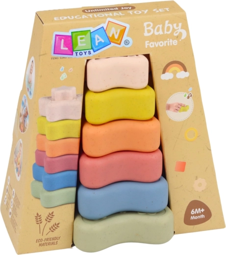 La torre è composta da 6 pezzi pastello dal più grande al più piccolo, che si possono impilare, ordinare e combinare liberamente. Il gioco sviluppa il pensiero logico, la percezione dei colori e sostiene la naturale curiosità.