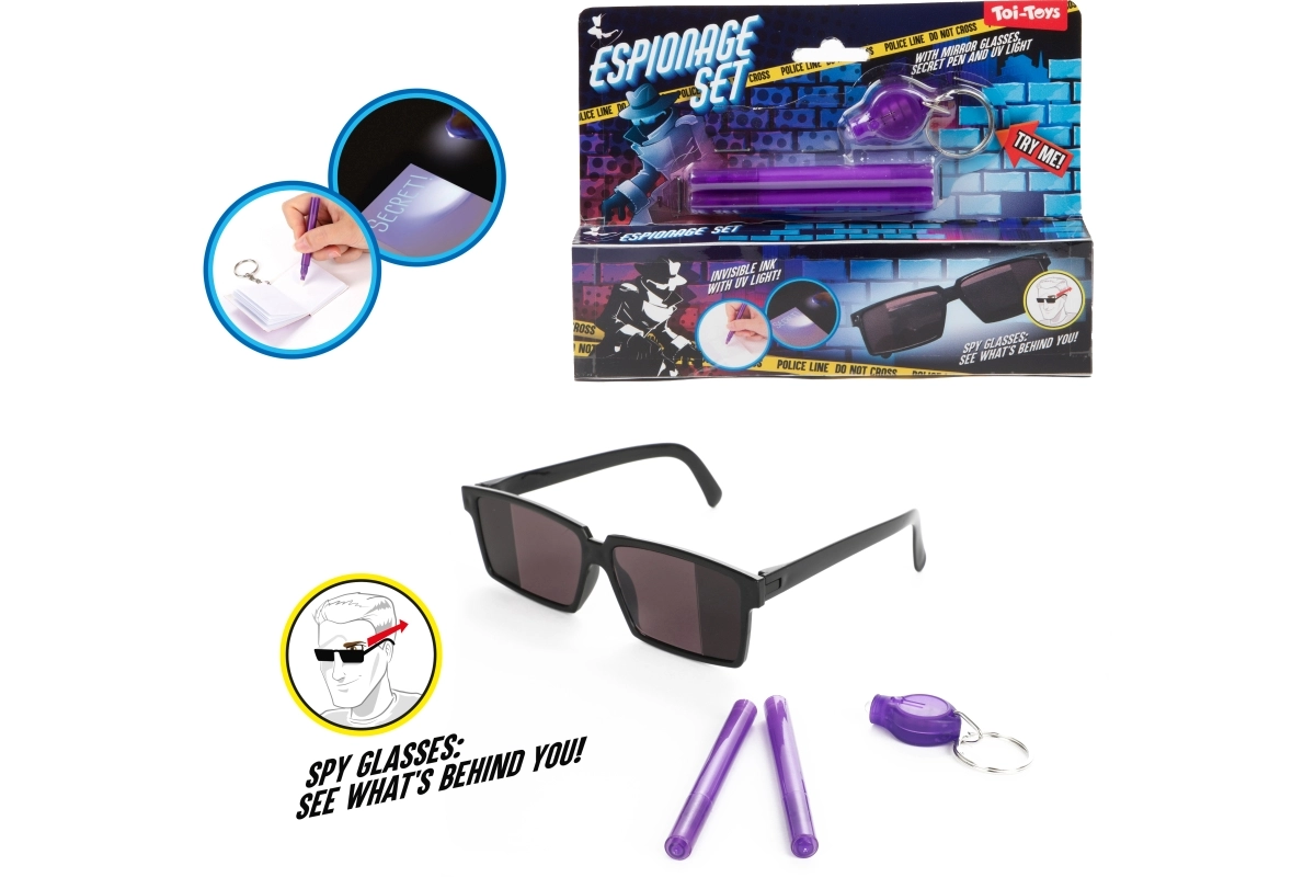 Con questo set da spia, i bambini diventeranno maestri di missioni segrete. I messaggi scritti con l’inchiostro speciale sono visibili solo sotto la luce UV, rendendo ogni avventura ancora più emozionante. Gli occhiali con visione posteriore permettono ai piccoli agenti di osservare discretamente ciò che accade alle loro spalle.