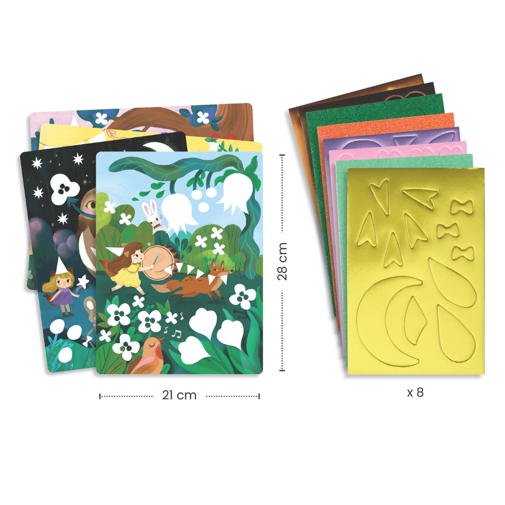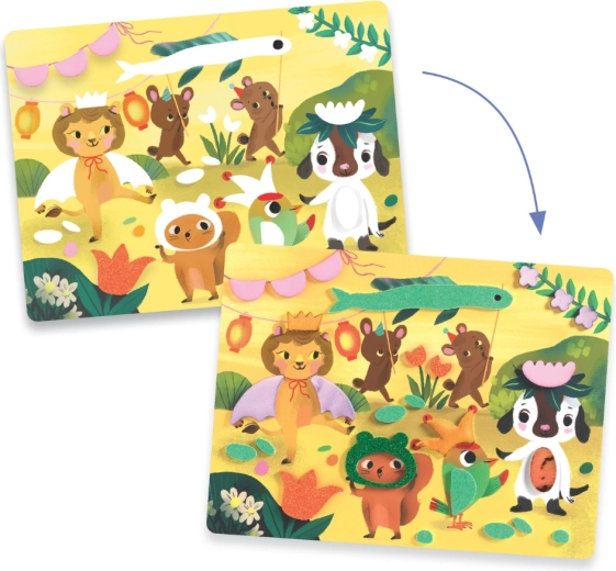 Scopri il divertente set creativo di DJECO con cui i bambini realizzano immagini scintillanti usando adesivi in gommapiuma. Il set sviluppa motricità fine, creatività e pazienza – basta staccare, incollare e l’immagine con gli animaletti si illuminerà di dettagli lucenti.