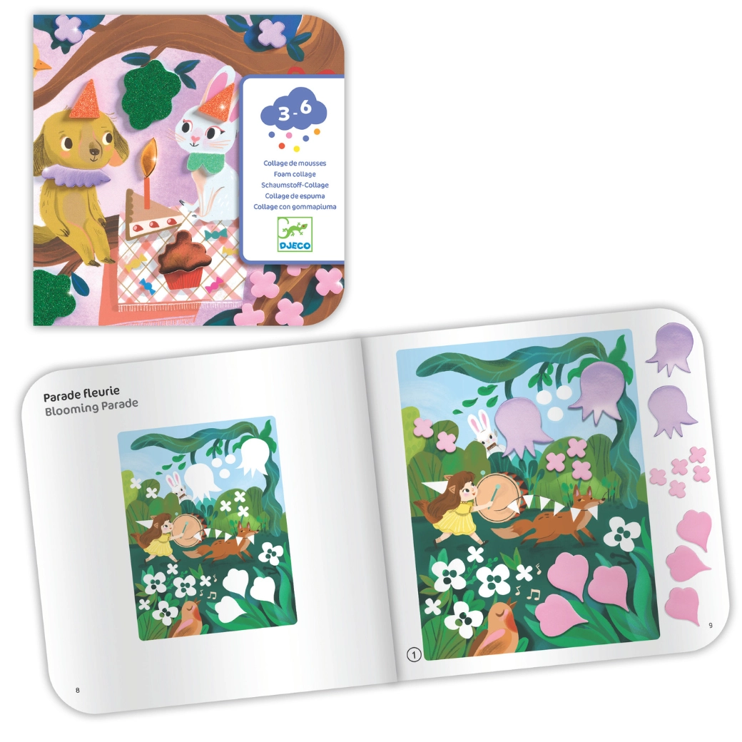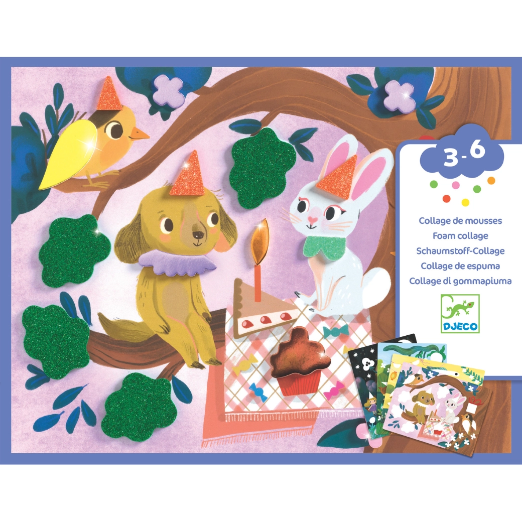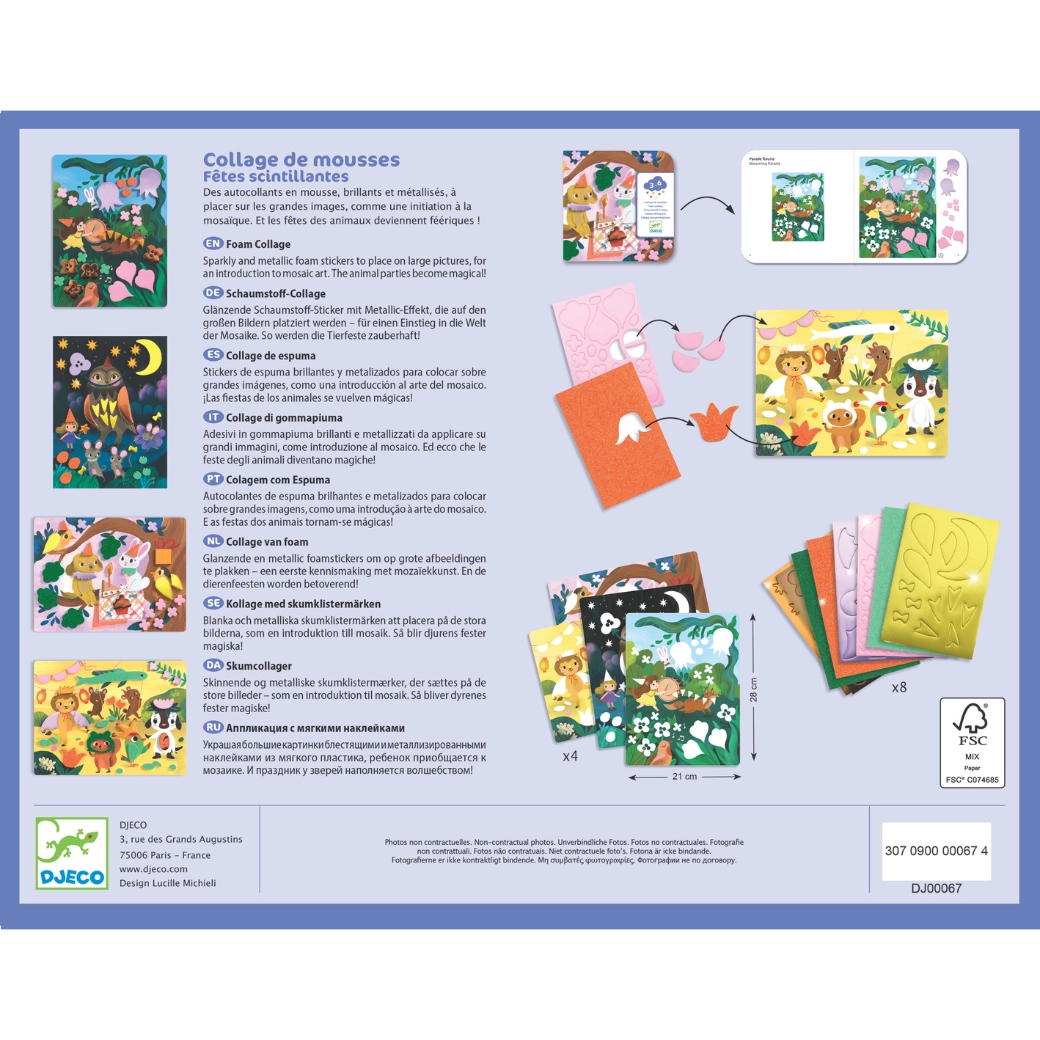 DJECO collage in gommapiuma Feste scintillanti – set creativo per bambini