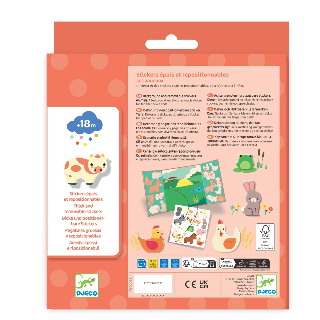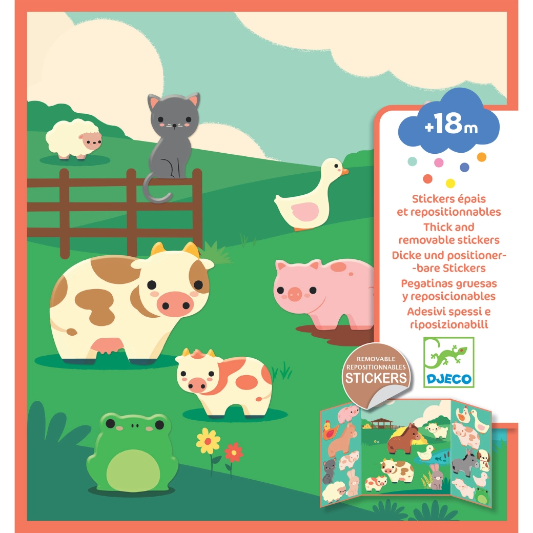 Scopri la magia dell’incolla-e-stacca con il set creativo del brand DJECO. Gli adesivi riposizionabili a tema animali della fattoria permettono ai bambini di attaccare, staccare e ricomporre facilmente le proprie storie di fattoria, senza disordine e senza residui di colla.