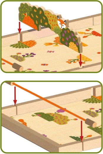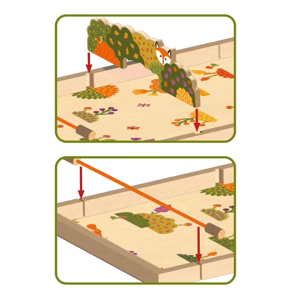 Grazie alla superficie liscia per scivolate precise dei gettoni e al telaio solido, l’esperienza di gioco è fluida e resistente agli urti. Il montaggio è intuitivo: ostacoli centrali ed elementi decorativi scorrono nelle apposite scanalature. Tutto è pensato per sviluppare destrezza, concentrazione e pensiero tattico in modo divertente.