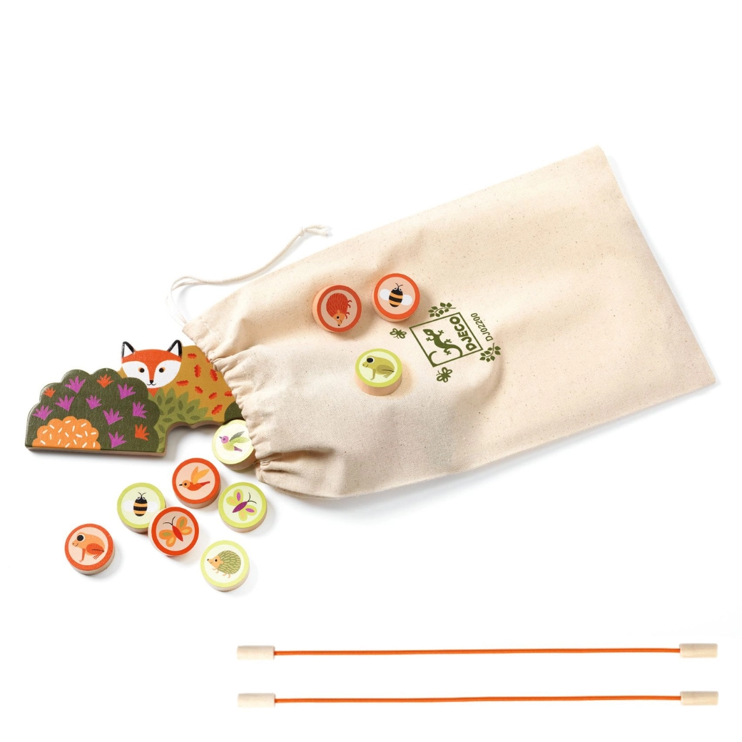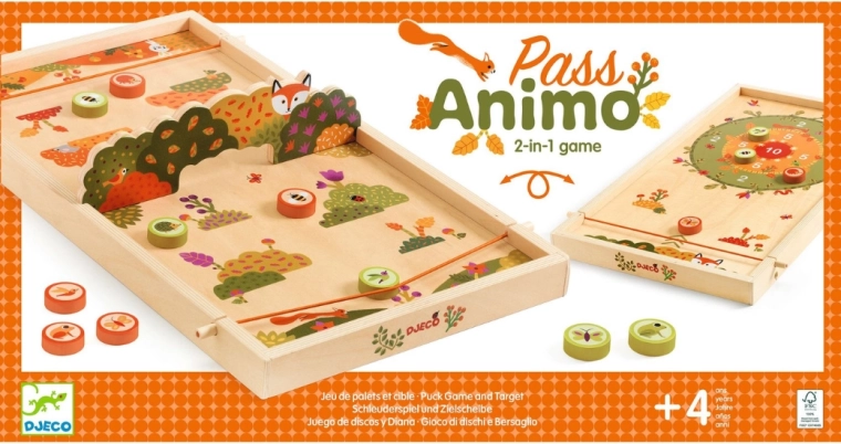 Il gioco Pass Animo di Djeco offre due modalità su un’unica robusta plancia in legno con incantevoli illustrazioni del bosco. Da un lato ti godi rapidi tiri “flick” di dischi in legno tramite lanciatori elastici verso bersagli numerati; dall’altro, la pesca e l’abbinamento dei gettoni-animale con l’aiuto di canne o regole semplificate per i più piccoli. Regole semplici e round veloci lo rendono il gioco di famiglia ideale.