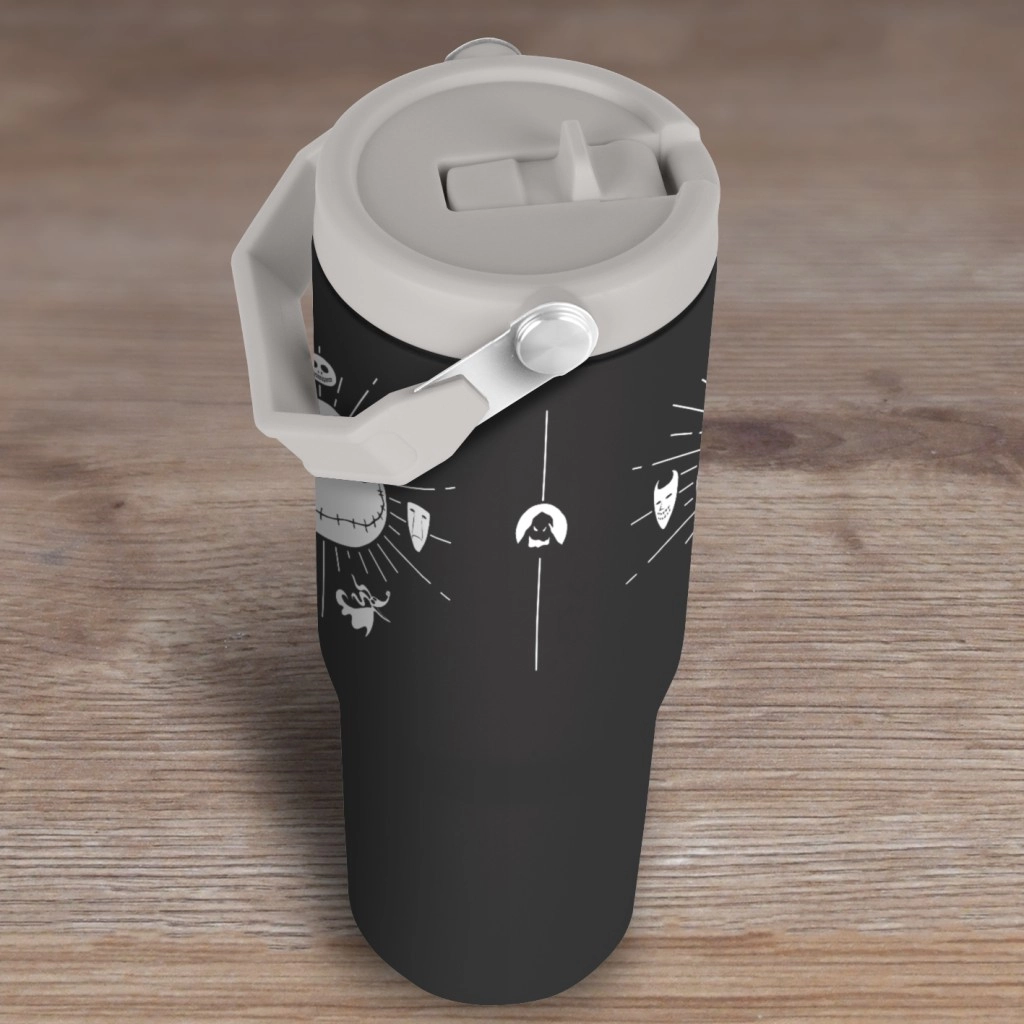 Elegante tazza termica da viaggio ispirata al film THE NIGHTMARE BEFORE CHRISTMAS, ideale per i fan in movimento. Grazie alla doppia parete, al coperchio richiudibile e al manico ribaltabile, mantiene la bevanda più a lungo calda o fredda e garantisce bere comodo e sicuro senza schizzi.