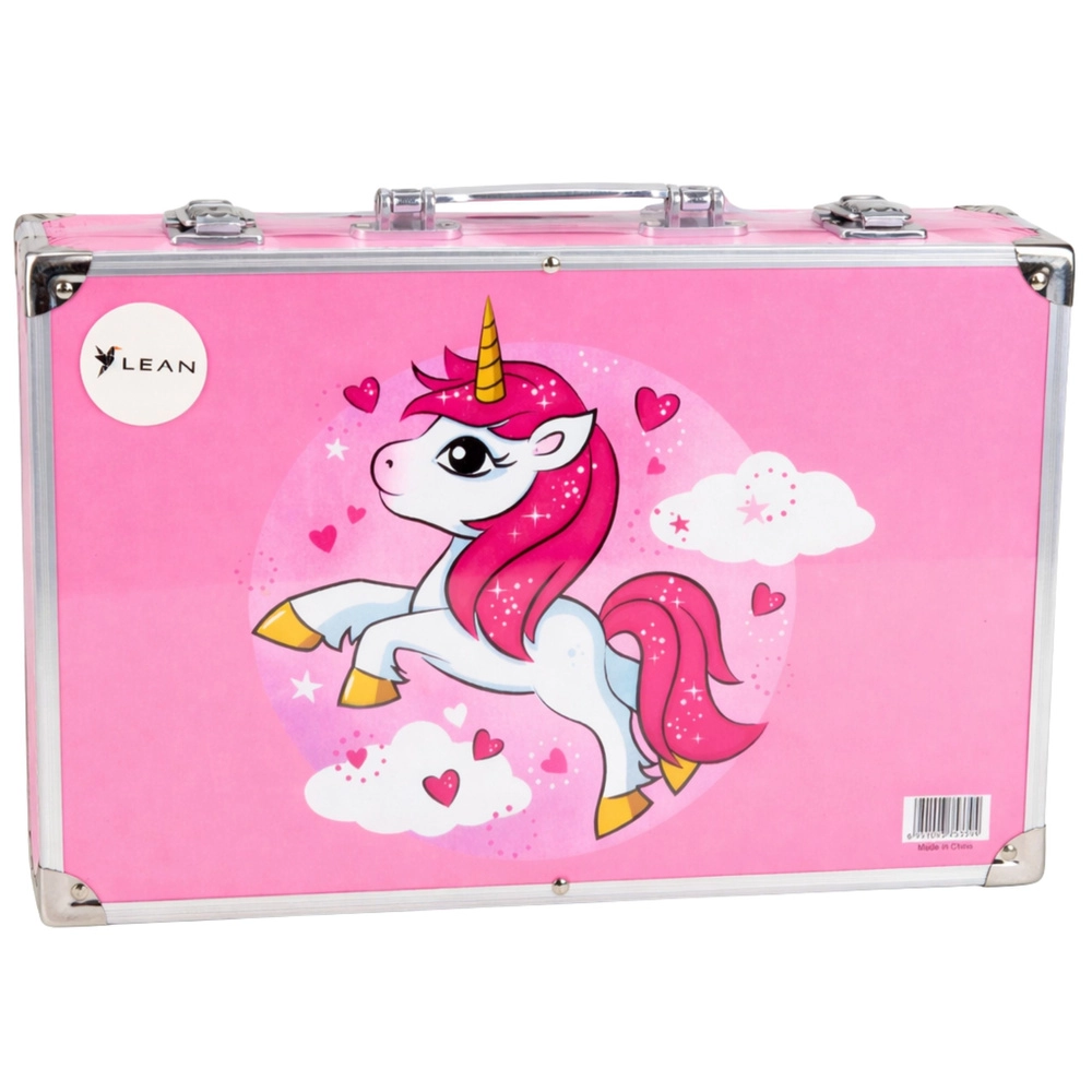 La valigetta rosa con un simpatico unicorno entusiasmerà i piccoli artisti e li motiverà a creare. È ideale come regalo ed è perfetta sia per i lavori creativi a casa che per l’educazione artistica.