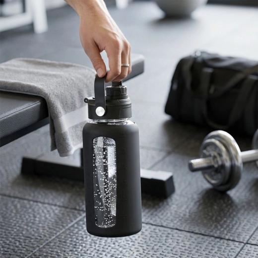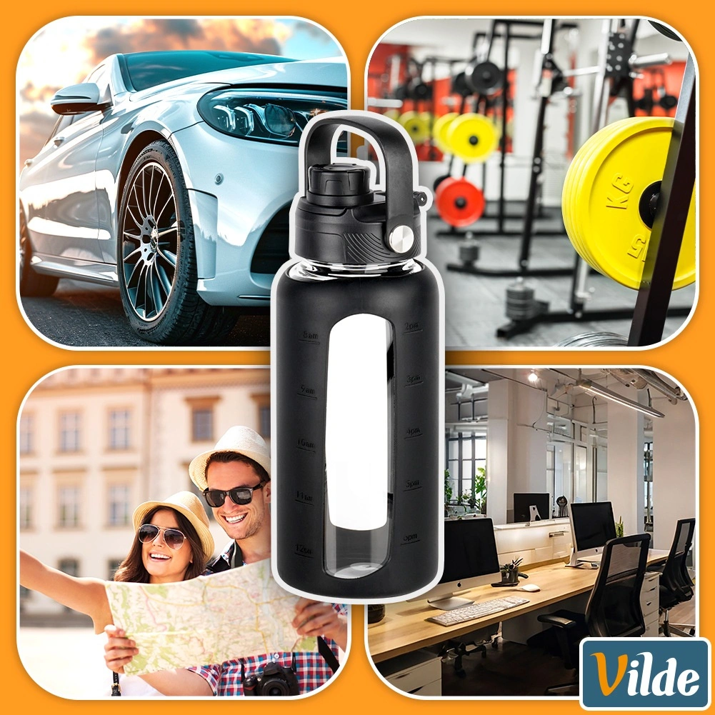 Resta idratato con stile e in modo consapevole. La borraccia in vetro borosilicato resistente gestisce temperature da -20 °C a 120 °C, ideale per acqua, bibite e tè freddi. La custodia in silicone aumenta la resistenza, migliora la presa e, grazie alla finestra trasparente, consente un comodo controllo del livello e della scala graduata.