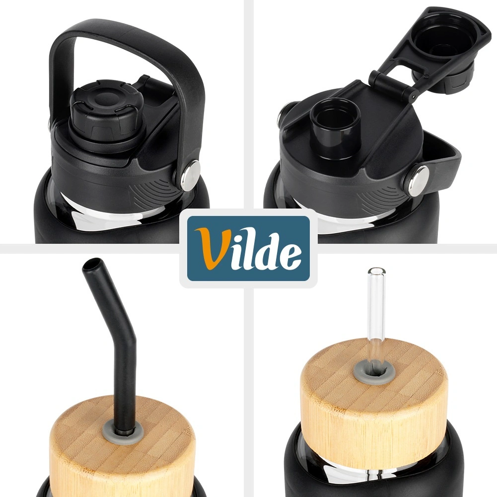 1× coperchio sportivo flip con beccuccio e manico, 1× coperchio in bambù con foro per cannuccia