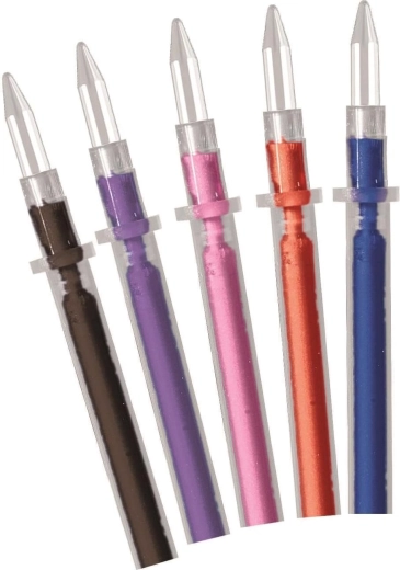 - 5 penne personalizzabili: corpi trasparenti, ricariche a inchiostro, cappucci e terminali.