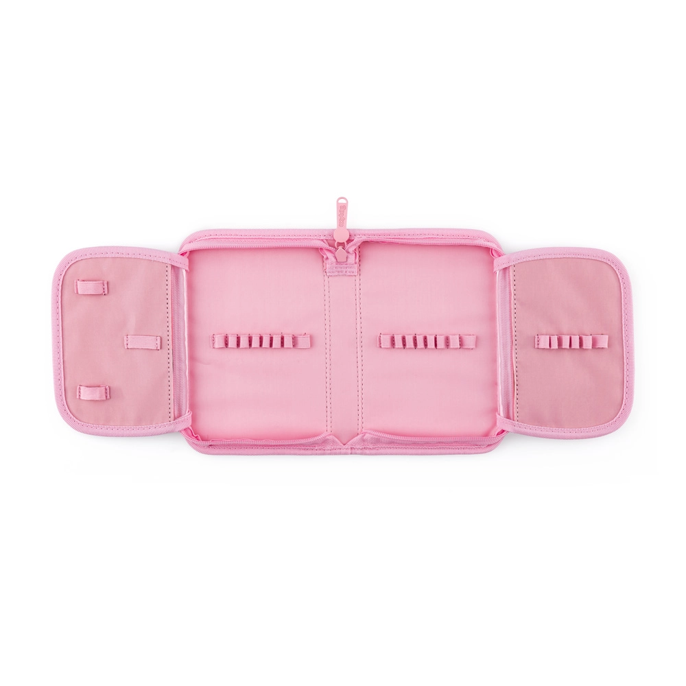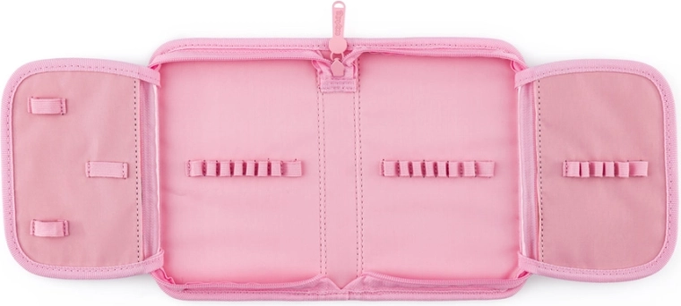 Elegante astuccio scolastico rosa con motivo cavallo e due alette, dotato di 25 passanti elastici per organizzare in modo ordinato il materiale di scrittura. Grazie alle tasche trasparenti per l’orario avrai sempre il piano delle lezioni a portata di mano. Le dimensioni compatte e la chiusura con zip perimetrale garantiscono un trasporto facile e una chiusura sicura.