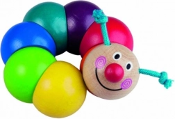 Un bruco colorato in perline di legno infilate su un elastico supporta lo sviluppo della motricità fine già dai 6 mesi. È atossico, conforme alle norme UE e, grazie alla lunghezza compatta di 13 cm, si impugna facilmente anche dalle manine più piccole.