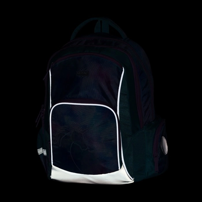 Cercate un set scolastico pratico e al tempo stesso bellissimo per i piccoli alunni? OXY GO Unicorn unisce design moderno e funzionalite0 studiata nei dettagli. Lo zaino con schienale anatomico e traspirante e spallacci regolabili garantisce un trasporto confortevole dalla 1aa alla 3aa classe. Il fondo rigido e impermeabile protegge il contenuto da sporco e umidite0, mentre gli elementi riflettenti aumentano la visibilite0 nel tragitto verso la scuola.