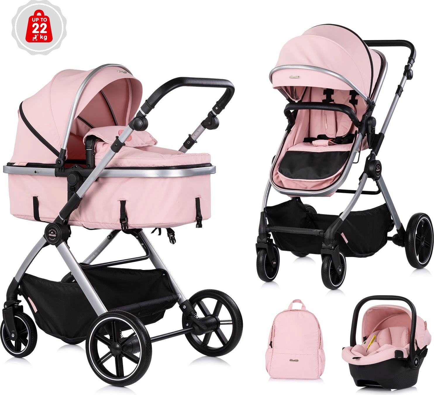 Chipolino Pearl passeggino combinato 2in1 Powder Pink