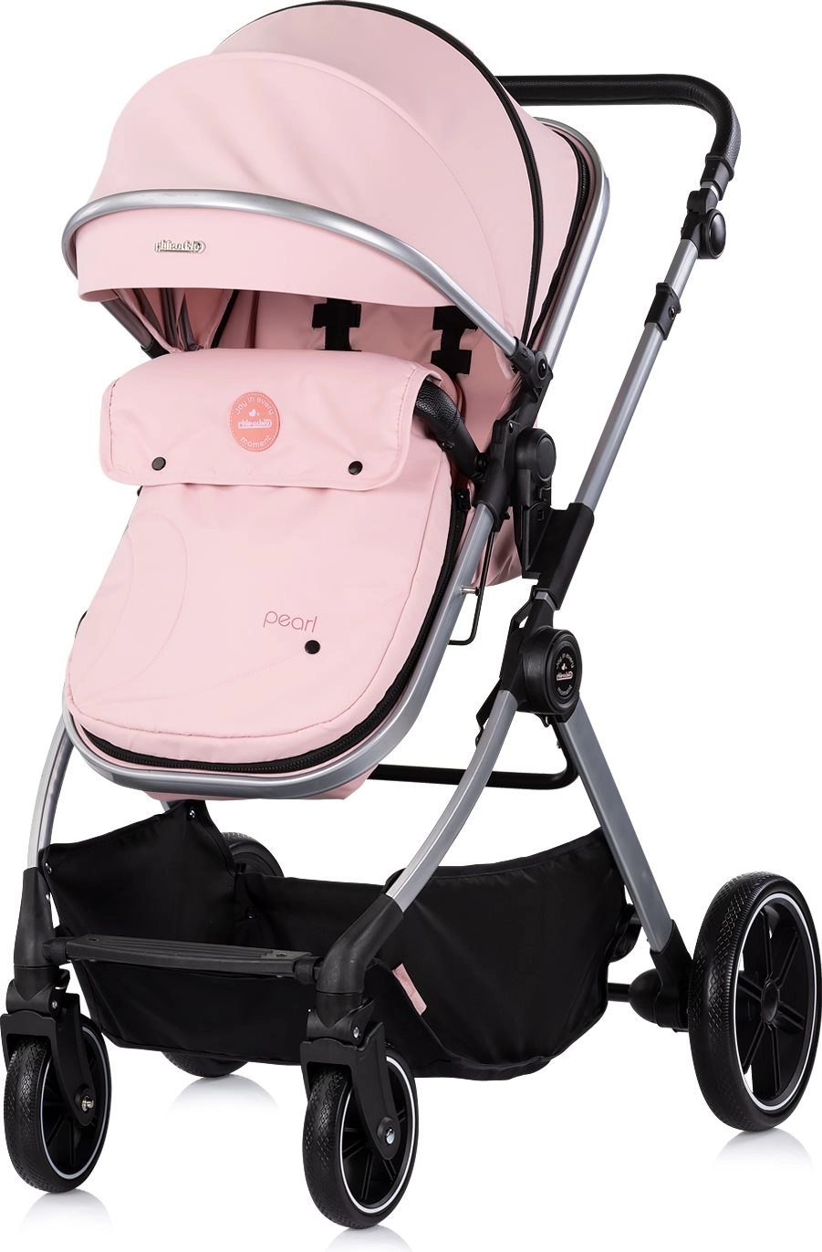 Chipolino Pearl 2in1 è un pratico passeggino combinato che cresce con il tuo bambino, dal neonato al toddler. Un'unica unità seduta si trasforma rapidamente in navicella, per affrontare senza pensieri i primi mesi e il successivo periodo più attivo. L'ampia capottina estensibile con finestrella protegge da sole e vento e consente ai genitori di controllare il bimbo senza disturbarlo.
