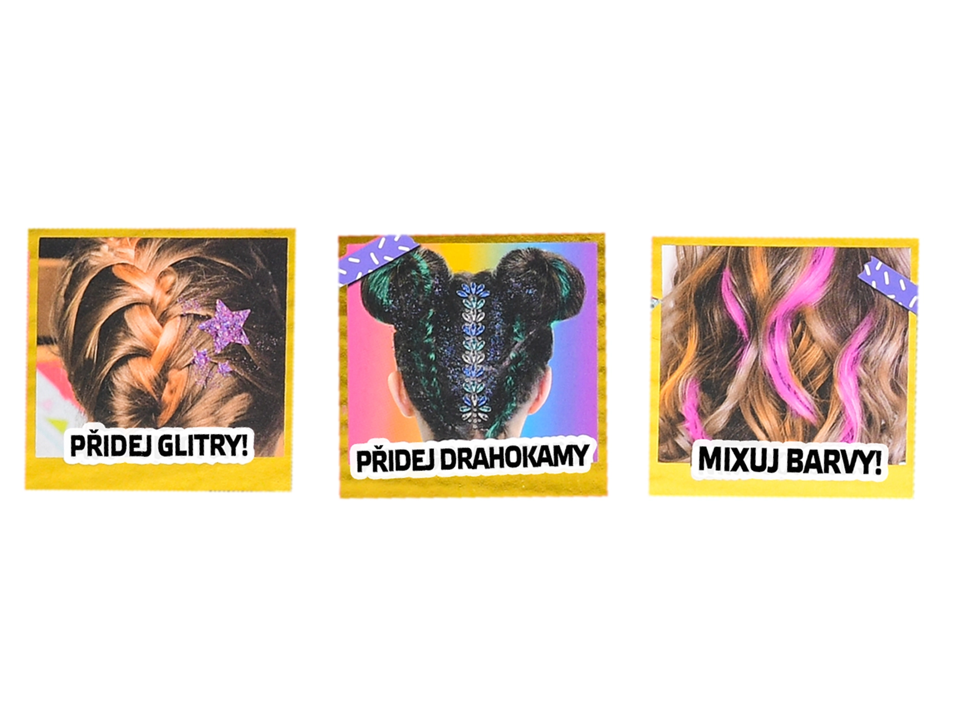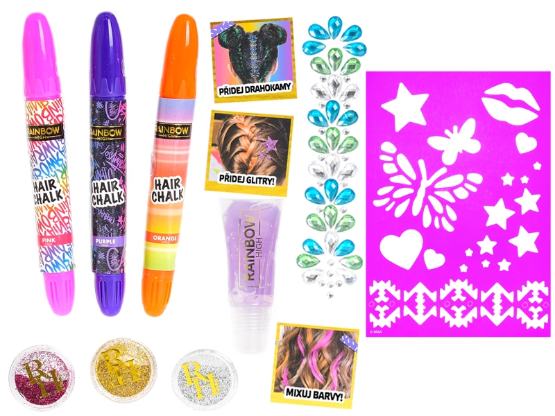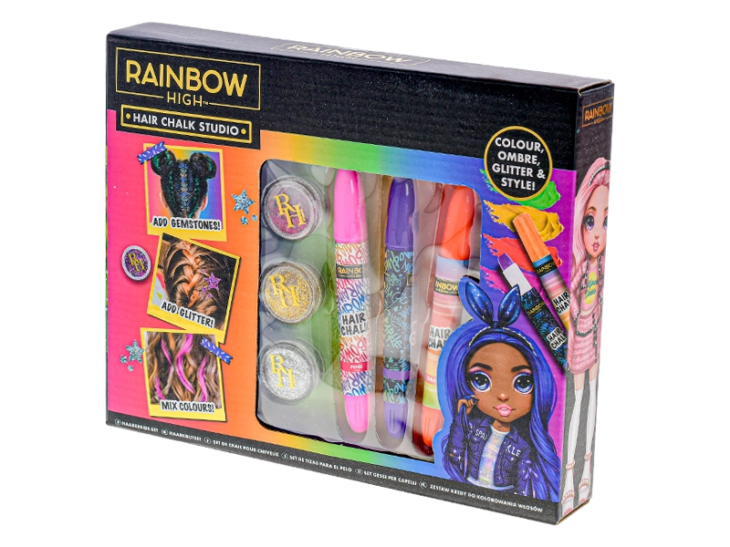 Scopri il mondo di stile RAINBOW HIGH e crea un look unico in pochi istanti. Il set è pensato per una decorazione dei capelli sicura e temporanea e stimola creatività e fantasia. Grazie all’applicazione semplice, anche i principianti possono realizzare acconciature d’effetto.
