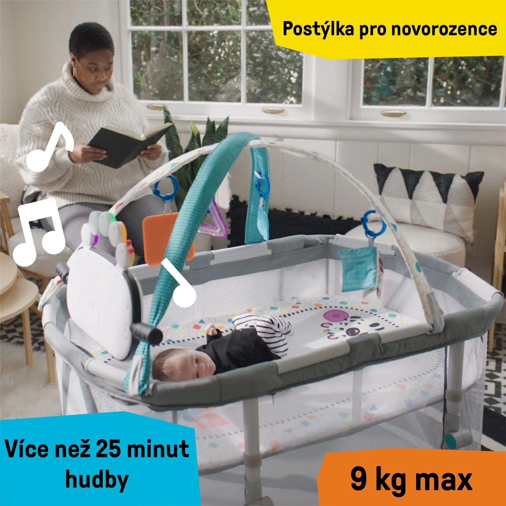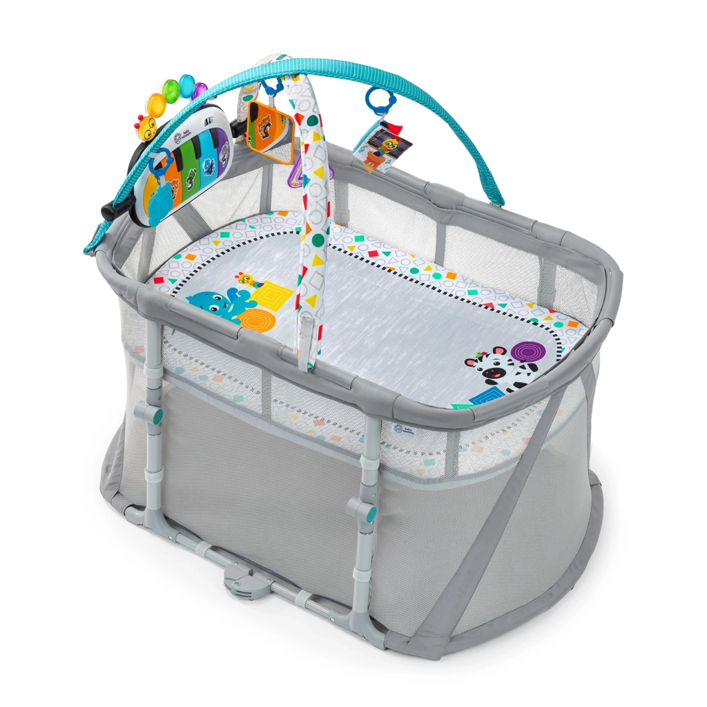 Scopri una soluzione flessibile per cura e gioco con Baby Einstein Kick & Snooze 3-in-1. In modalità bassinet offre al neonato un luogo accogliente e sicuro per dormire con musica calmante e luci soffuse. Con la crescita del bambino, passa facilmente a activity gym per il tummy time e lo sviluppo sensoriale, oppure a playard/box per un gioco autonomo in sicurezza.