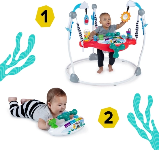 Il saltarello Baby Einstein Ocean Explorers Airplane Adventure trasforma ogni rimbalzo in un’avventura sensoriale: musica, luci ed elementi interattivi premiano il bambino per il movimento attivo e favoriscono lo sviluppo della motricità grossa e fine. Il seggiolino girevole a 360° consente al bambino di raggiungere i giochi tutt’intorno e di scoprire nuovi stimoli da ogni lato.