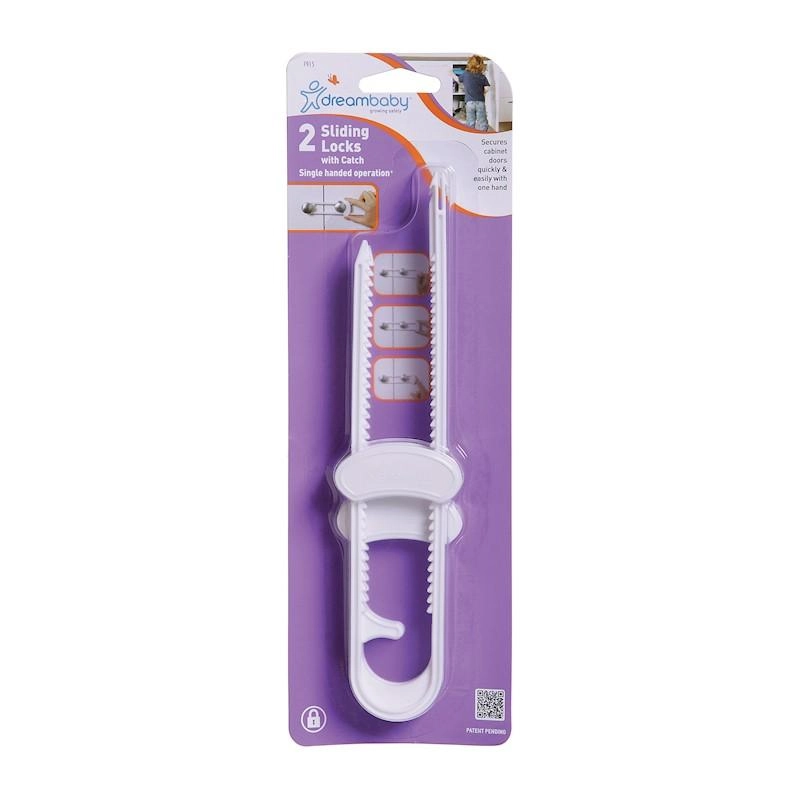 Tenete il contenuto degli armadietti fuori dalla portata dei bambini con le serrature scorrevoli Dreambaby. Offrono un bloccaggio rapido e sicuro delle ante con azionamento con una sola mano, non richiedono installazione e si adattano a maniglie a forma di D. Sono realizzate in plastica resistente e nella confezione trovate 2 pezzi – ideali anche in viaggio.