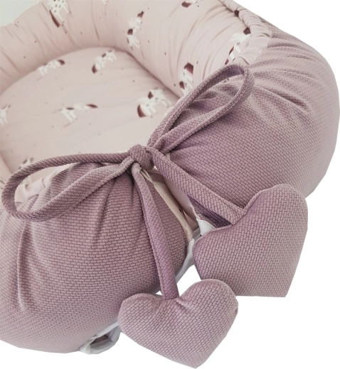 Il pratico cordino con terminali decorativi consente di regolare facilmente la dimensione e adattare il nido alle esigenze attuali del bambino.