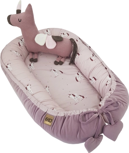 Il nido per bebè universale Eko Unicorn 90 × 60 cm crea per il piccolo uno spazio accogliente e protetto, a casa e in viaggio. I bordi alti e morbidamente imbottiti aiutano a mantenere il bambino in posizione stabile e facilitano il posizionamento su un fianco, utile soprattutto in caso di reflusso. Il lato interno in cotone delicato e il morbido velluto all’esterno garantiscono massimo comfort e calore.