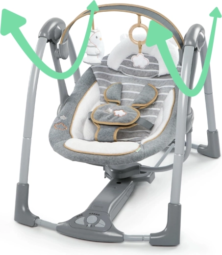 Calma il tuo bambino con un dolce dondolio ovunque ti trovi. L’altalena portatile Ingenuity Swing’n Go nel design Bella Teddy offre una struttura pieghevole compatta, 5 velocità di dondolio, 8 melodie e 3 suoni della natura e un motore silenzioso per un riposo tranquillo. I morbidi tessuti premium, il poggiatesta removibile e la cintura imbottita a 5 punti garantiscono comfort e sicurezza dalla nascita fino a 9 kg.