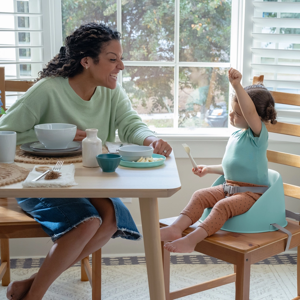 Il rialzo Ingenuity My Spot in colore teal aiuta i bambini a passare gradualmente dal seggiolone al pasto in famiglia. Il guscio ergonomico con schienale alto favorisce una postura corretta, mentre la cintura a 3 punti mantiene il bambino al sicuro. Grazie alle dimensioni compatte e al peso ridotto, si trasporta facilmente tra le stanze e durante le uscite.