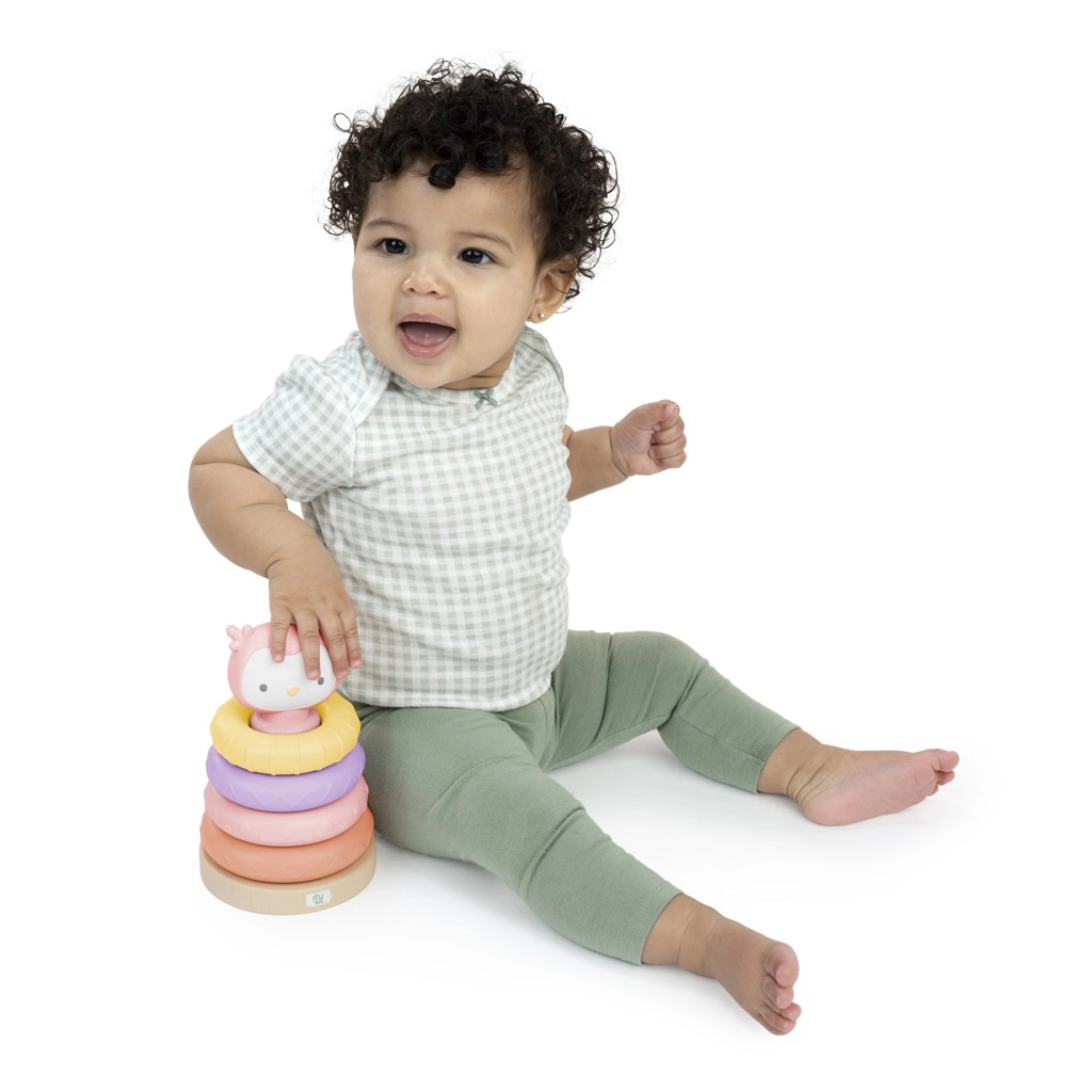 La piramide impilabile ity by INGENUITY con la gufetta Nally è il giocattolo educativo ideale per i primi apprendimenti, offrendo una scoperta sicura di colori, forme e texture. Grazie agli anelli alleggeriti e testurizzati senza BPA, il bebè può afferrarli e impilarli con facilità, allenando in modo naturale la presa e la coordinazione.