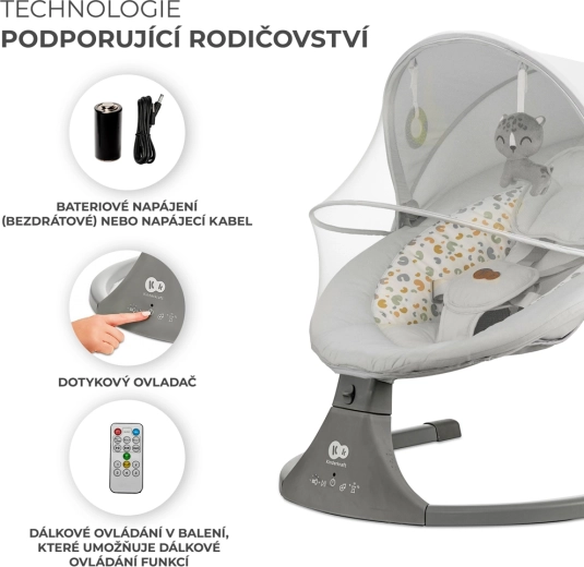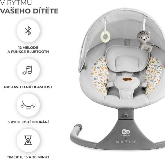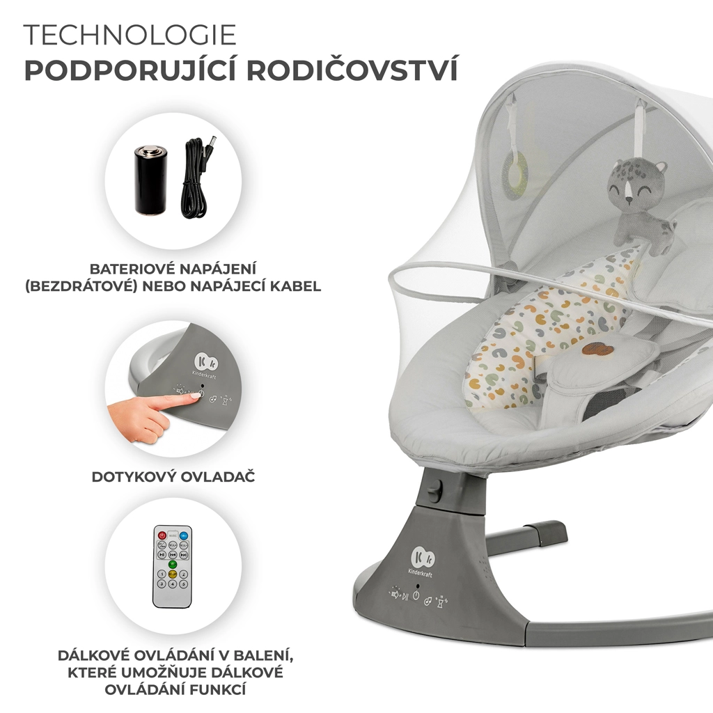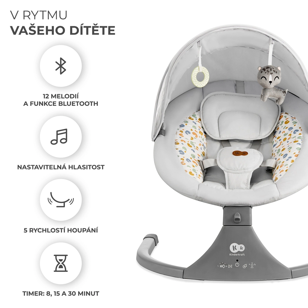 La sdraietta Kinderkraft LUMI unisce tecnologia moderna e design sicuro per un addormentamento confortevole dalla nascita fino a 9 kg. Grazie al dondolio laterale il bebè si sente come in braccio, mentre il motore silenzioso non disturba il sonno. Con la connettività Bluetooth e l’ingresso USB puoi riprodurre facilmente le ninne nanne preferite direttamente dallo smartphone.
