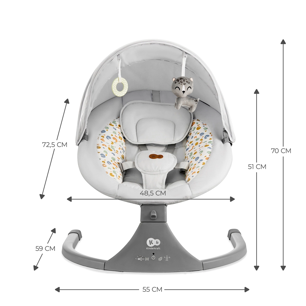 Calma il tuo bebè in un attimo con la sdraietta e culla 2in1 Kinderkraft LUMI nella raffinata tonalità Premium Light Grey. L’esclusivo movimento oscillatorio laterale imita i movimenti naturali nel grembo materno, mentre 5 velocità di dondolio, 12 melodie con controllo del volume e riproduzione Bluetooth/USB favoriscono un sonno sereno. Per il massimo comfort non mancano telecomando, imbottitura morbida con poggiatesta e cintura di sicurezza a 5 punti.
