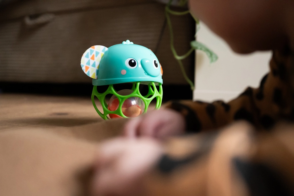 Giggle & Glow è un giocattolo leggero e resistente progettato per le manine dei più piccoli. La sfera OBALL a griglia con numerose aperture facilita la presa e lo scuotimento, mentre nella “pancina” dell'elefante una pallina con arachide produce un effetto sonoro stimolante. Le guance luminose e le risatine motivano il bambino a esplorare e sviluppano in modo giocoso i sensi.