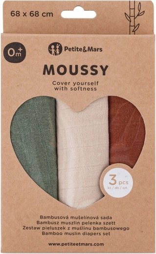 Le mussoline in bambù e cotone Moussy sono un elemento essenziale per la cura quotidiana del neonato. Grazie alla composizione 70% bambù e 30% cotone, si distinguono per morbidezza, leggerezza e ottima capacità di assorbimento. Sicure fin dalla nascita, non contengono sostanze nocive e sono delicate anche sulla pelle più sensibile.