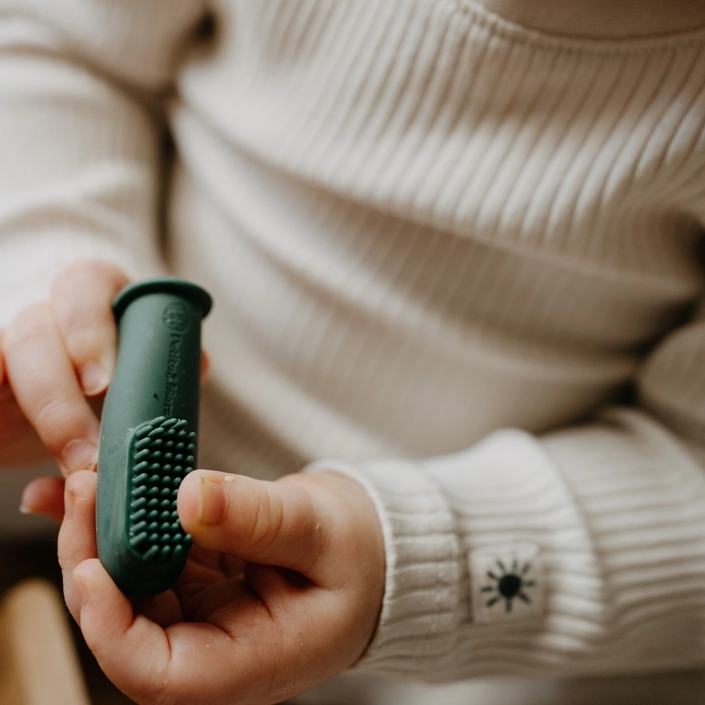 Insegnate sane abitudini fin dai primi mesi con gli spazzolini da dito PETITE&MARS. Grazie al morbido silicone alimentare senza BPA si prendono cura con delicatezza delle gengive e dei primi dentini. Facili da infilare sul dito per un controllo perfetto e una pulizia sicura, mentre la pratica custodia mantiene gli spazzolini igienicamente puliti a casa e in viaggio. Ideali dai 6 mesi per la routine quotidiana e per dare sollievo durante la dentizione.