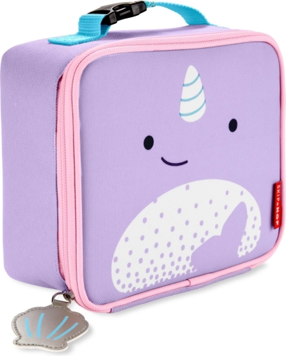 La graziosa e pratica borsa porta merenda Skip Hop Zoo con motivo narvalo mantiene cibi e bevande freschi più a lungo grazie al capiente interno isolato. Offre una chiusura con zip sicura, manico con clip per un facile fissaggio allo zaino e una tasca interna a rete per posate o sacca del ghiaccio. Ideale per scuola, attività extrascolastiche, campi e picnic.