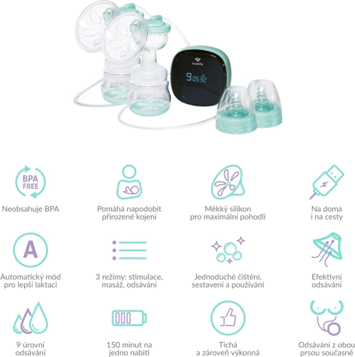 Goditi un’estrazione comoda ed efficiente con il tiralatte elettrico doppio TrueLife Nutrio BP. Estrae da entrambi i seni contemporaneamente, permettendoti di ottenere in media il 18% di latte in più con maggiore contenuto di grassi e calorie. Grazie a 3 modalità e 9 livelli di intensità, puoi adattare le prestazioni alle tue esigenze. Il tiralatte è silenzioso, leggero, dispone di un display LED intuitivo, offre autonomia fino a 150 minuti ed è realizzato con materiali senza BPA.