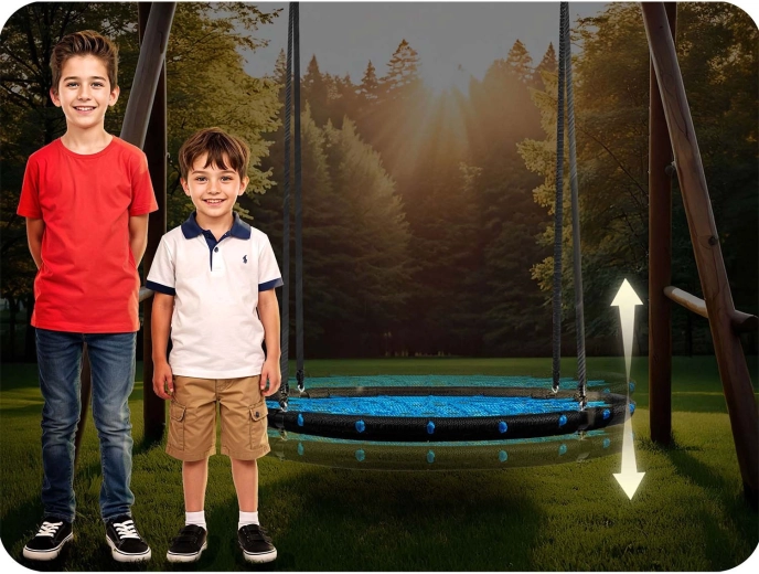 Le robuste corde in PE sono resistenti ai raggi UV e all’usura meccanica, prolungando la durata anche con uso quotidiano. L’altezza regolabile nel range di circa 90–160 cm consente di adattare l’altalena all’età e alla statura del bambino, garantendo una salita sicura e un dondolio confortevole.