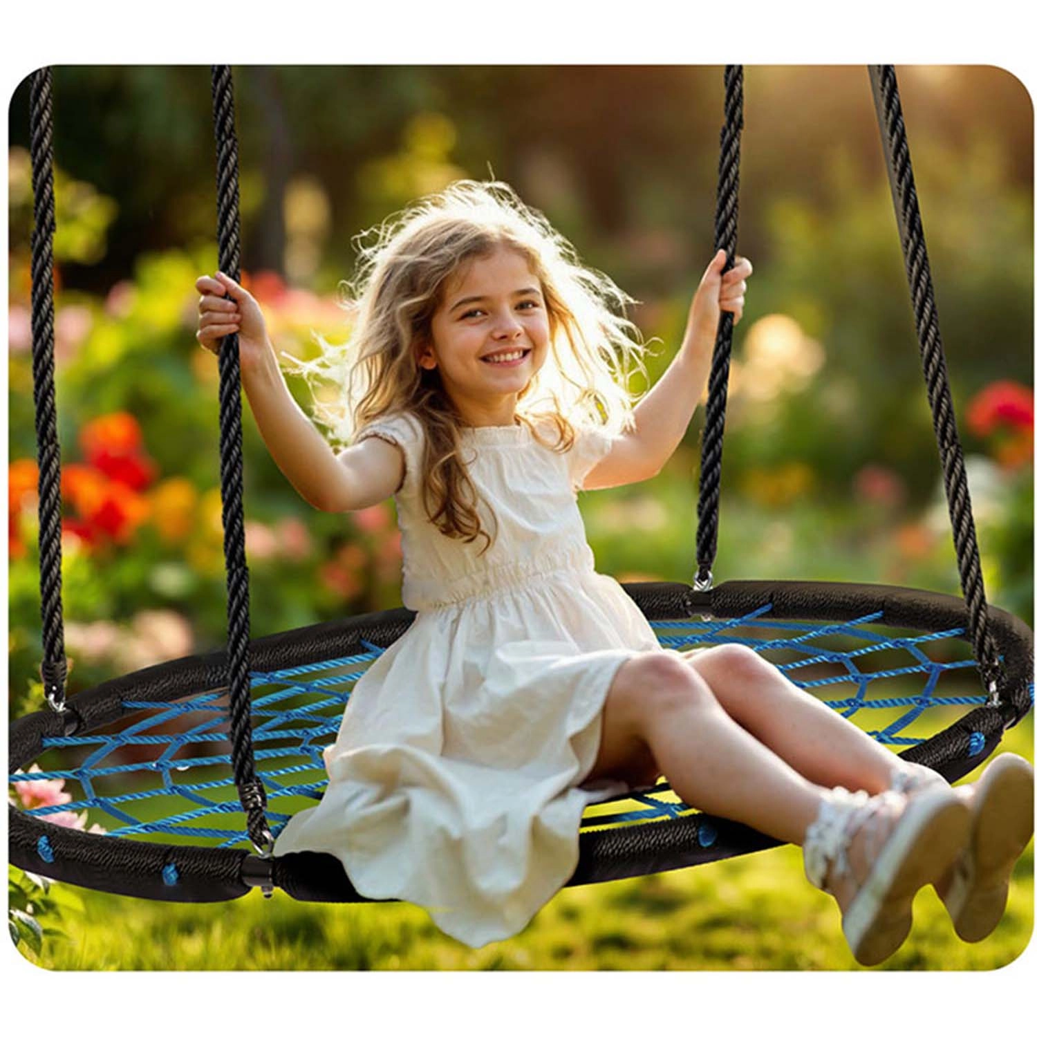 Scopri l’ampia altalena circolare tipo nido di cicogna con diametro di 120 cm del marchio NEO-SPORT – ideale per bambini e adulti. Grazie al telaio in acciaio rivestito in PE, alla robusta seduta a rete e alle corde di sospensione regolabili, offre un dondolio sicuro e confortevole in giardino. Il materiale in PE resistente è facile da pulire, impermeabile e resistente ai raggi UV e all’abrasione. La portata massima fino a 150 kg garantisce tanto divertimento per più utenti contemporaneamente.