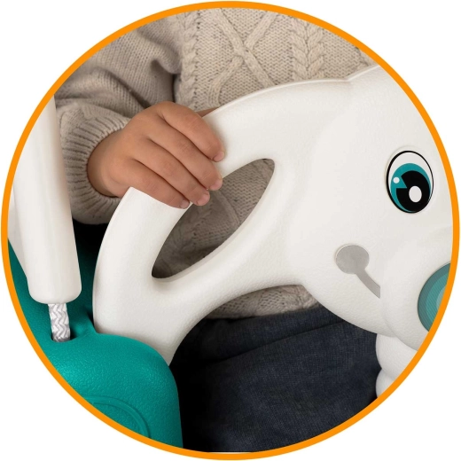La struttura modulare 3in1 consente di adattare l’altalena all’età e alle capacità del bambino: con schienale e barra anteriore per i più piccoli, senza barra per i prescolari e come altalena piatta classica per i più grandi. Grazie a materiali di qualità, ergonomia studiata e presa sicura, offre il massimo comfort e sicurezza nell’uso quotidiano.