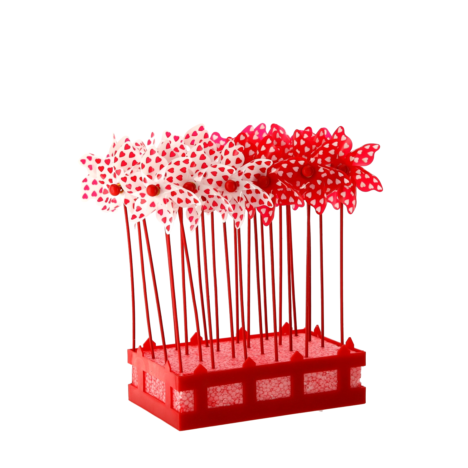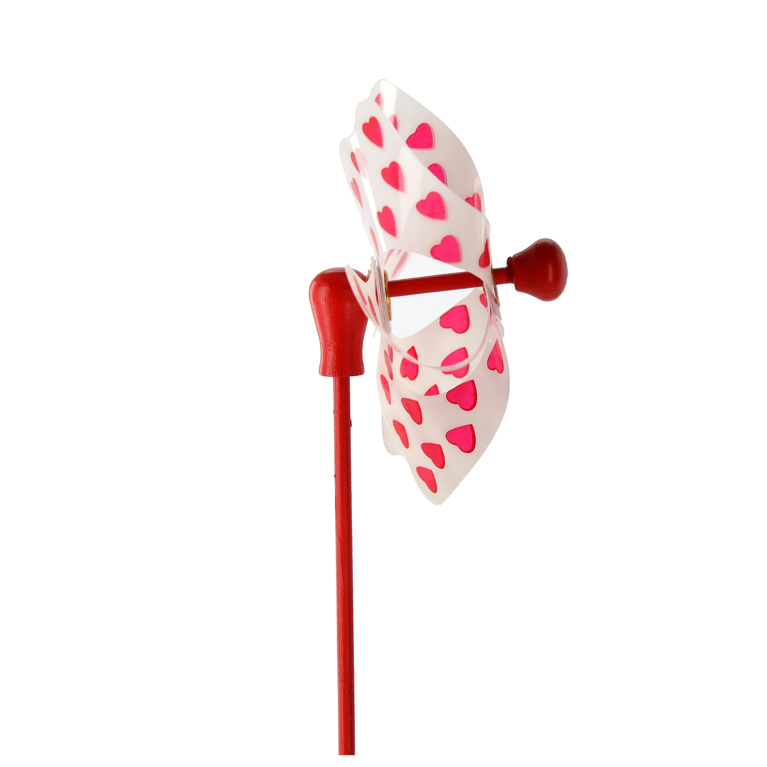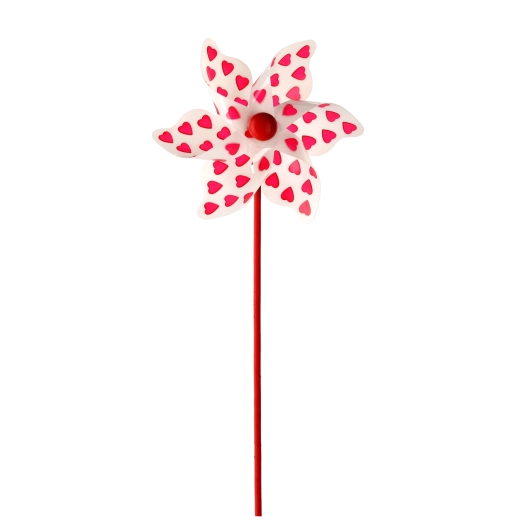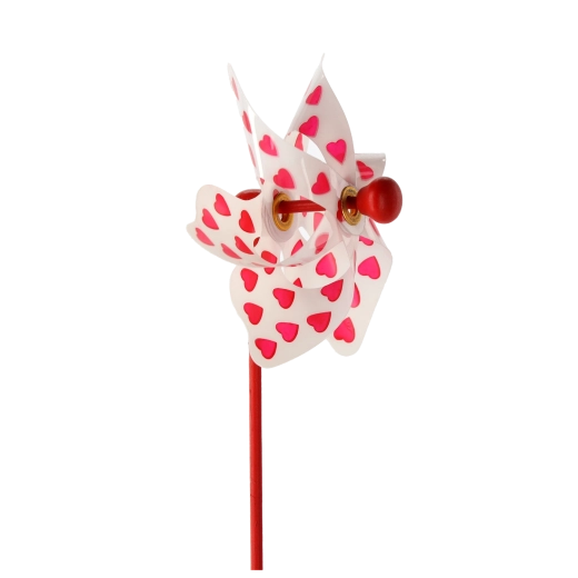 Questa graziosa girandola con cuoricini porta un tocco giocoso a ogni spazio e crea un effetto visivo a ogni soffio di vento. Grazie alla struttura in plastica leggera e alla stecca in bambù si inserisce facilmente nel terriccio, nella sabbia o in composizioni decorative.